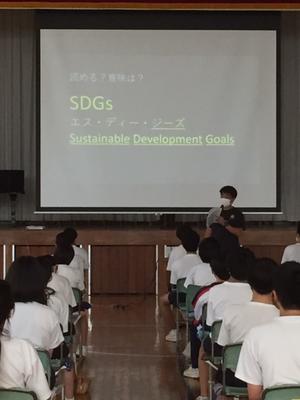 社会科の調べ学習を通して、何を学ぶのか。国語の話し合い活動で何を学ぶのか。学級活動で何を学ぶのか。部活動や生徒会活動で何を学ぶのか。・・・学校は、さまざまな活動を行っています。当然のことながら、その活動は生徒に「・・・・な力を身につけてほしい」という願いの下、行われています。もちろん、「知識や技能」を身につけてほしいという場面もありますし、「協働するための力」のようにスキル(判断を伴った技術)を身につけさせたいこともあります。また、「我慢をしたり、譲ったり、思いやったりする力」のような自律力を身につけさせたいこともあります。その学び方は、場面に応じて様々です。光という外的刺激があって植物が成長するように、教育は自己を成長させるための外部からの刺激があってこそ成立するものです。その刺激を快く感じる場面もありますし、そうでない場合も当然あります。中学校は大人になる学校ですので、今まで経験したことがない社会との摩擦に戸惑うケースがあるかもしれません。つい、「守ってあげたい」「かばってあげたい」と思いがちですが、「かわいい子には旅をさせよ」という言葉が日本にはあります。是非、たくましさを持ち合わせた人に育てたいものです。写真は「生徒総会で、【自立】」について全校討議をしているところと、「3年の総合的な学習の時間で【SDGs】」を学んでいるところです。
